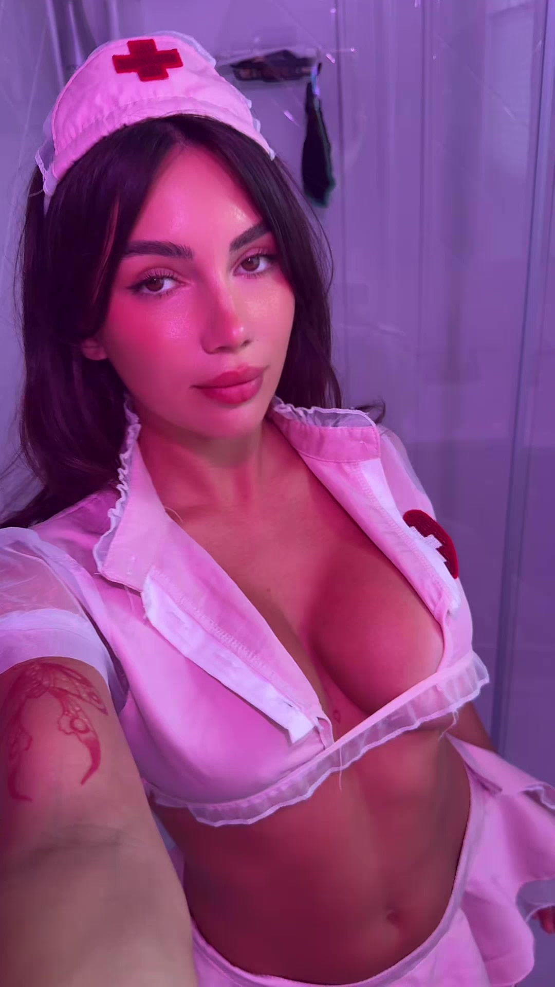 460 Порно видео с Pornomoll - Перед камерой телефона позирует секси медсестра и показывает свои груди через глубокое декольте. Девица с классным телом собирается красоваться телесами и делает это перед объективом, подготавливая фанатов её эротического блога к дальнейшим пошлостям и похабностям, а может и полноценному ебалову.