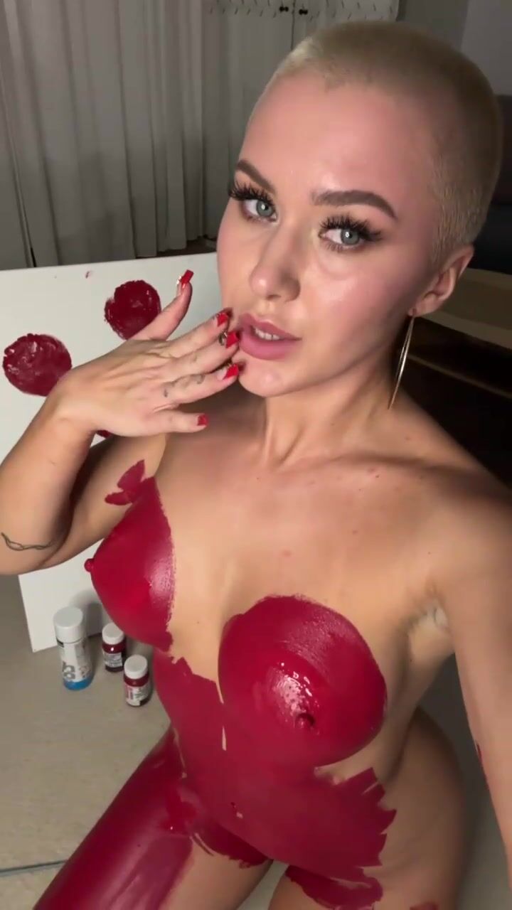 386 Порно видео с Sosushka - Женщина с побритой коротко головой показывает себя без одежды, только голые сиськи не просто вываливаются перед рожей зрителя, а покрашены краской. Куколка хочет замутить эротический порно Боди-арт, от которого у многих двойной кайф. Обнаженная натура женского тела заводит ещё сильнее, когда покрыта латексом или красящим материалом.